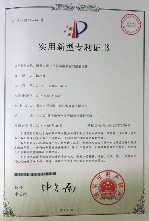 实用新型专利证书